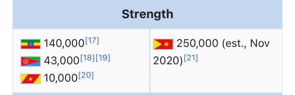 After a long build up of Eritrean and Amhara forces on Tigray’s borders, the actual fighting between the TPLF and the Ethiopia-Eritrea-Amhara alliance began with the 4 November attacks on Northern Command bases and headquarters of the ENDF in Tigray Region by TPLF-aligned security forces and with counterattacks by the ENDF in the Tigray Region on the same day, that federal authorities described as a police action.[42][32][43] The federal forces captured Mekelle, the capital of Tigray Region, on 28 November, after which Prime Minister Abiy declared the Tigray operation “over”.[10][44] The TPLF stated in late November that it would continue fighting until the “invaders” are out,[18][45][46] and on 28 June 2021 the Tigray Defense Forces retook Mekelle.[47]